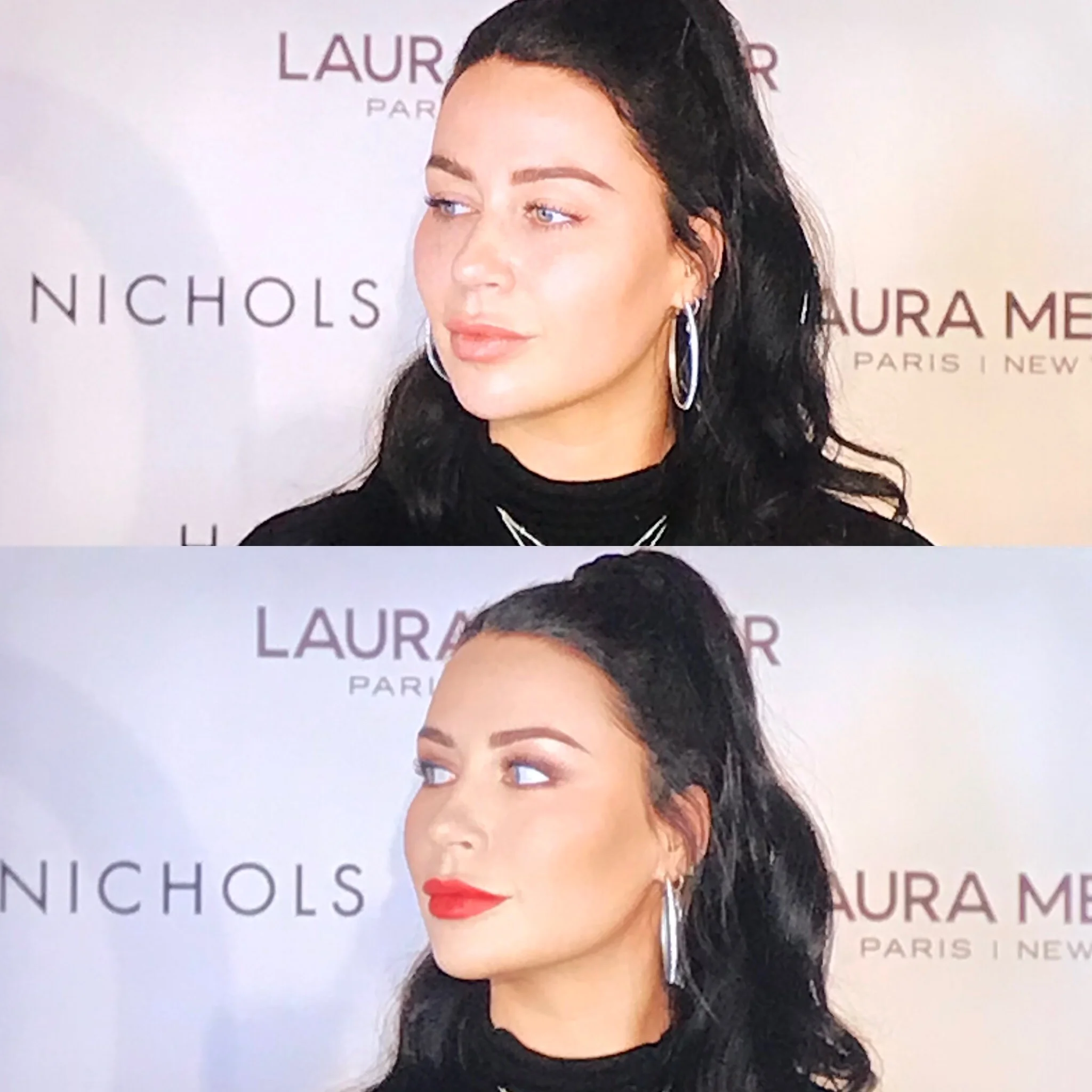 He finished and set the face with the Perfecting Water Moisture Mist £31 which he fan dried. After that, he went over with his sponge and lightly dabbed areas of the makeup where he wanted a more flawless finish. By the end of it, the model looked very spicy indeed, all thanks to the magic hands of Mario.