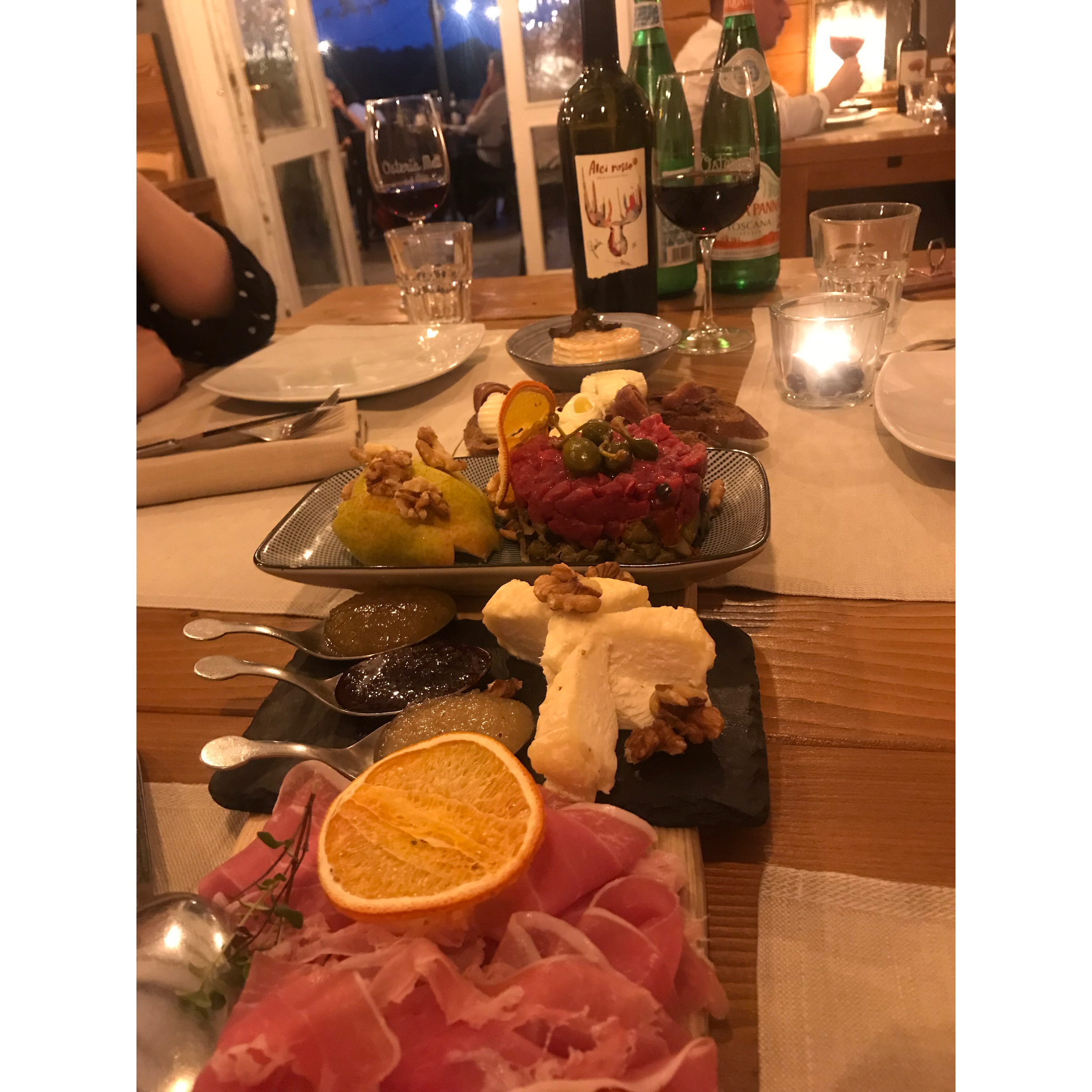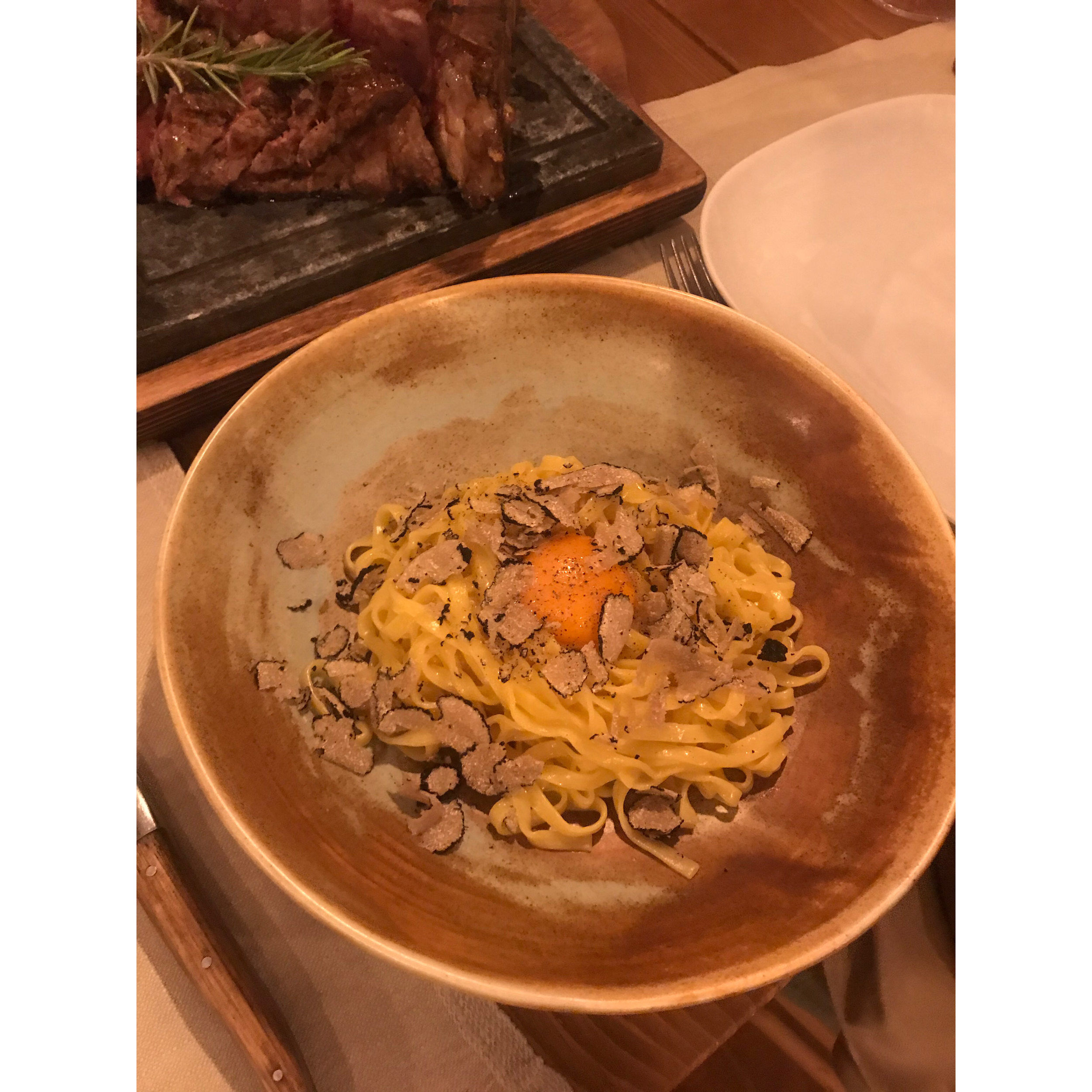 We had a starter of antipasti consisting of smoked burrata, goats cheese, anchovy on bread, beef tartare and all the delicious ham you could ever want! We then shared a truffle pasta with actual real truffle pieces (bouji AF) and a main of perfectly cooked steak, roasted potatoes and vegetables. We had a bottle of Amarone to nicely wash everything down. The antipasti in particular was super delicious and I would go back to this restaurant just for that!