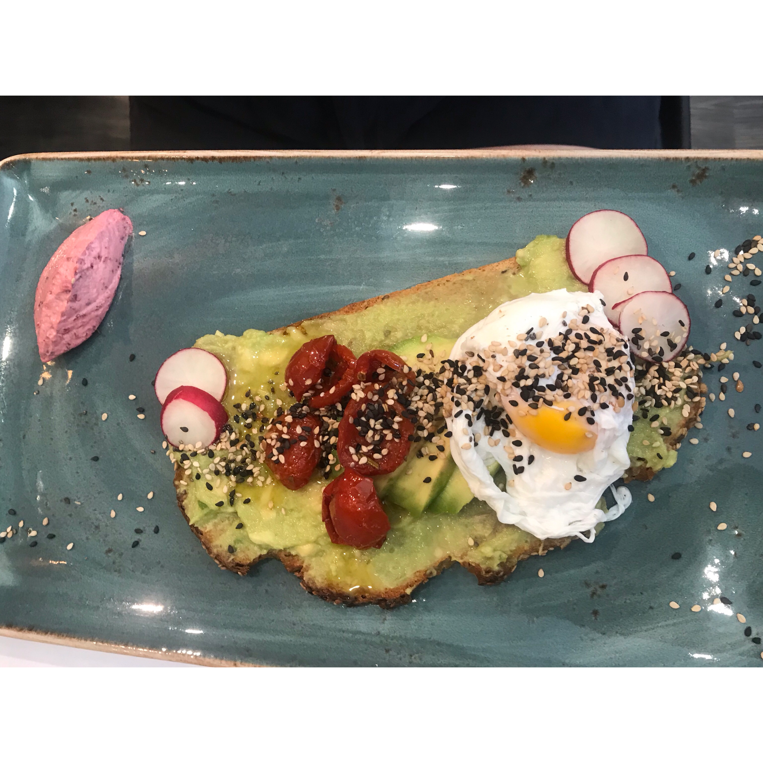 My friend Tahani and I met at Gatwick airport and though we were eager to shop, there was only so much you could peruse with options such as JD & Sports and Weatherspoons. We soon gave into Jamie’s Italian and had a very non-Italian breakfast of eggs Benedict with avocado on toast!